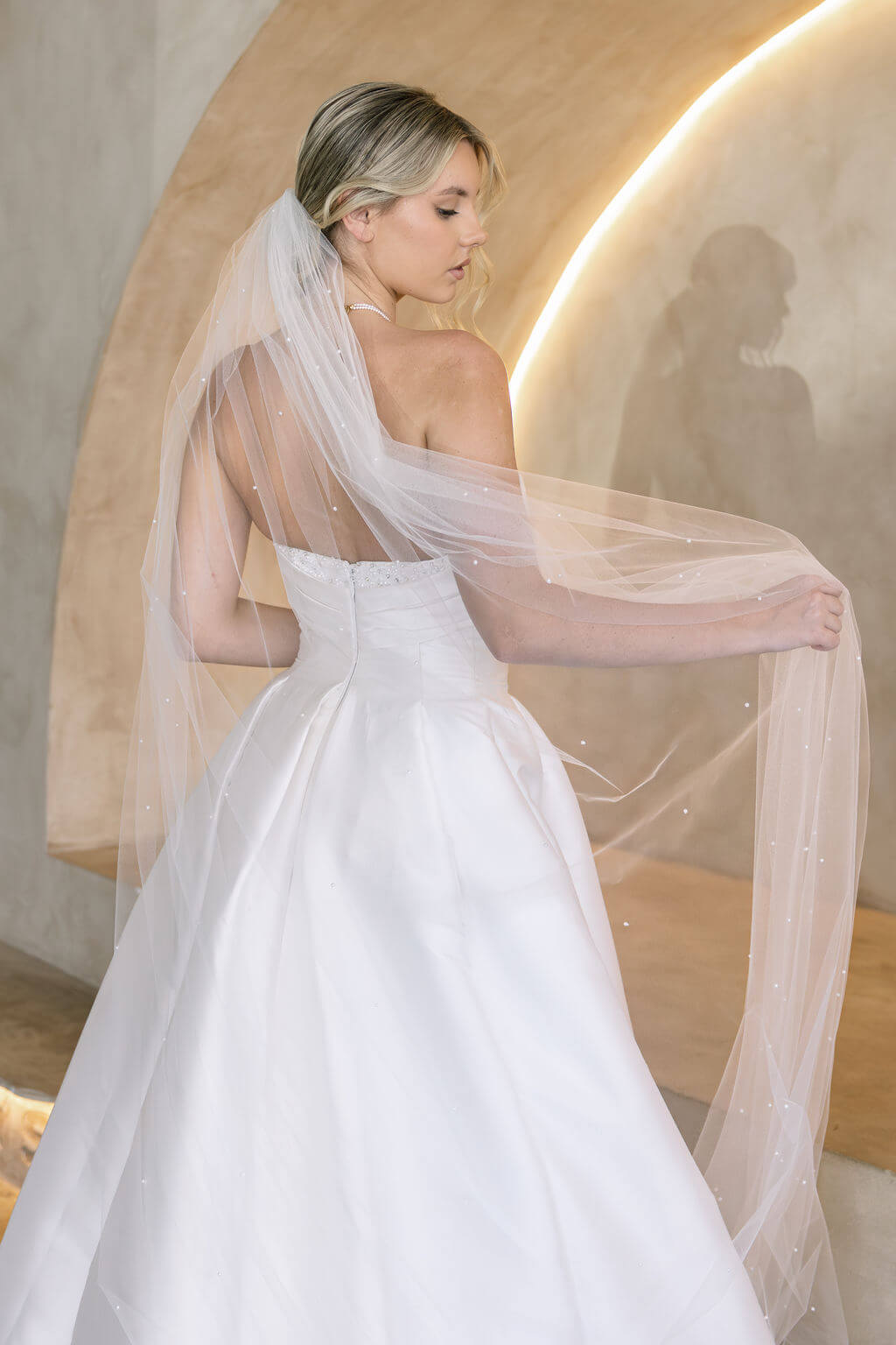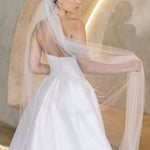 Soft, romantic, and delicately detailed — the Mila veil offers a timeless take on pearl embellishment. Featuring 4mm whole pearls scattered gently throughout, Mila creates a subtle, luminous effect that catches the light without overwhelming your gown.