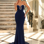Turn heads with the Bettina Gown an exquisite full-length gown that exudes sophistication and allure. This strapless design is adorned with a stunning beaded trim along the bodice, adding a touch of sparkle to the classic sweetheart neckline. The dress flows into a figure-hugging mermaid-style skirt that beautifully accentuates your silhouette, creating a striking hourglass effect. Perfect for making a statement at any formal event, this dress embodies timeless elegance with a modern edge. Embrace your inner goddess and captivate every room in the Bettina Gown!