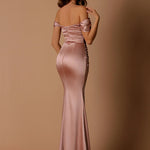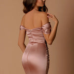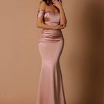 The Naomi Bridesmaid Dress by Nicolette is a stunning floor length gown. It features a sweetheart neckline and luxurious satin fabric that ruches across the bodice to form small swag sleeves. The ruched torso forms an ultra-flattering fit forming that coveted hourglass figure. Our Naomi dress is the perfect dress for school formals, wedding guests, bridesmaids and mothers of the bride.