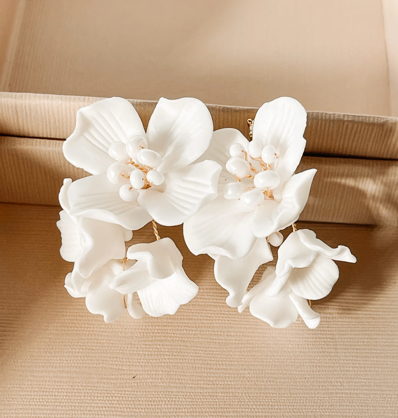 100% HANDMADE PORCELAIN GOLD BRIDAL EARRING